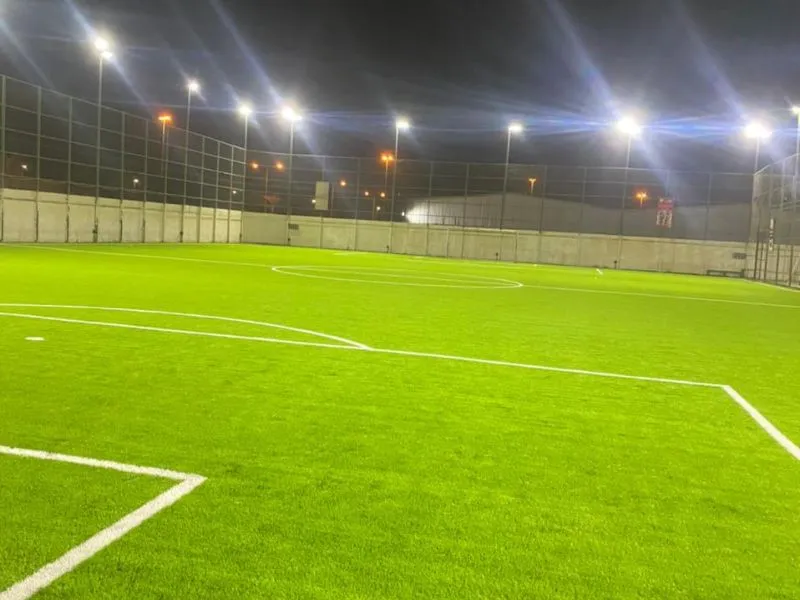نركب إضاءة، شبكات صرف، ومناطق جلوس إذا تحتاج، بحيث يكون الملعب كامل وجاهز لأي مباراة أو تدريب، وكل شيء مرتب ومتناسق مع الحديقة.